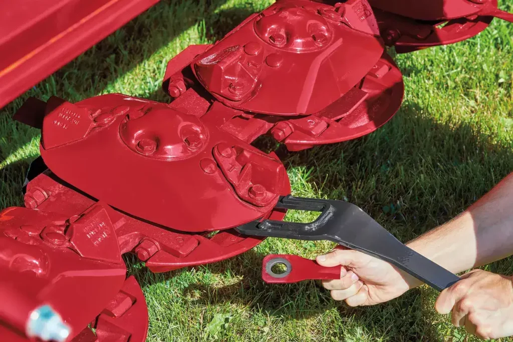 Industry-leading cut and crimp for superior hay quality and optimal windrow formation with a 16 ft. 5 in. (5 m) cutterbar width and 10 discs.