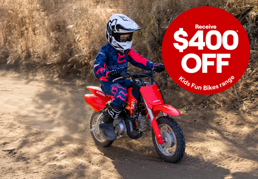 The Honda Kids Fun Bike range stands up to youthful enthusiasm, tough and ideal for family fun. Proven reliability means more time riding and less time taken up by maintenance and repairs, Honda is proud to offer a bullet proof Kids Fun Bike range that wonโt let you down.
